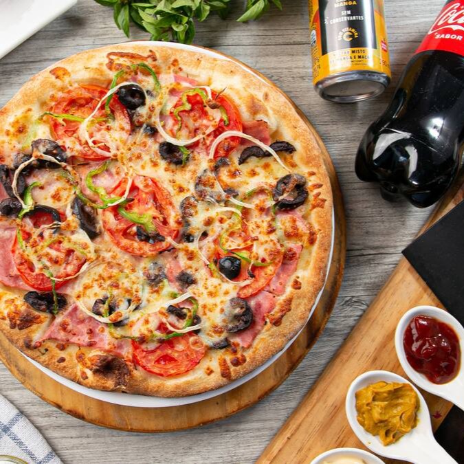 Escolha até 8 sabores, 4 pizzas e 2 refrigerantes