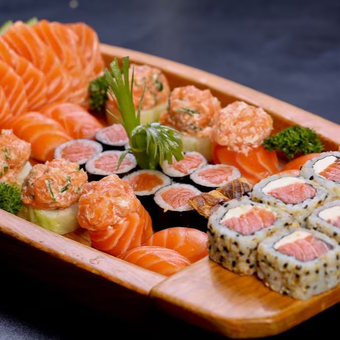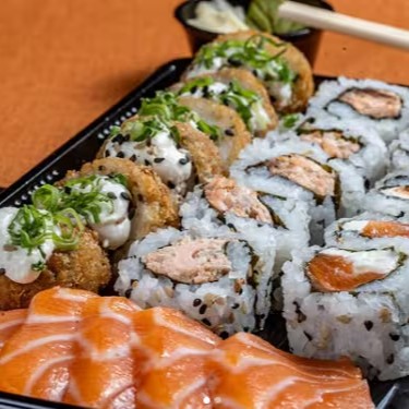 Um Combinado Delicioso Que Contém 4 Hosamaki De Salmão, 4 Uramaki De Fresh, 4 Hot Camarão, e de Brinde Um Maravilhoso Temaki de Salmão Com Philadelphia.