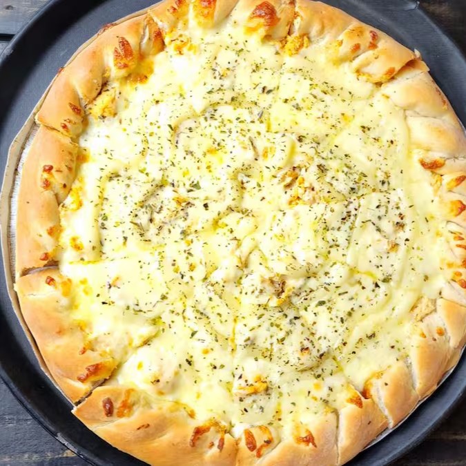 Massa Tradicional, Molho de Tomate, Muçarela, Frango Desfiado, Milho, Catupiry, Palmito e Orégano.