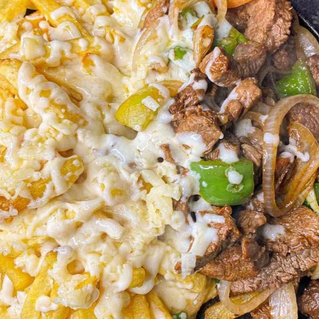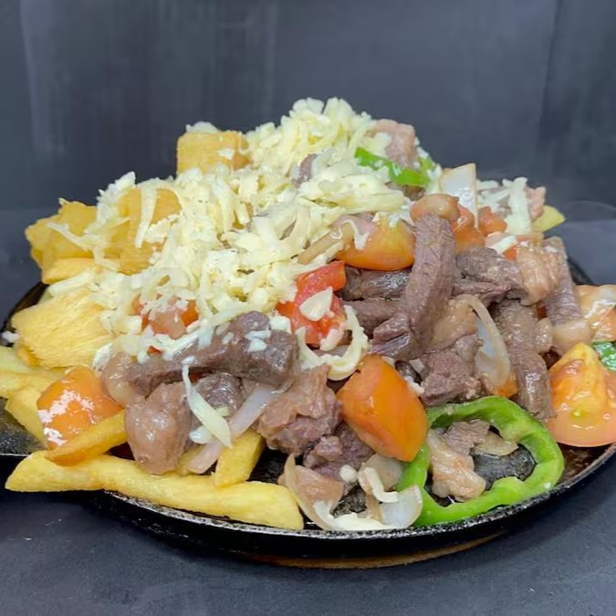 Deliciosa Picanha (600g De Carne), Que Acompanha Cebola, Pimentão, Tomate, Marmitex Grande De Arroz, Pouco de Vinagrete e Farofa + 400 Gramas de Fritas com Bastante Mussarela. Carne Macia Com Muita Suculência.