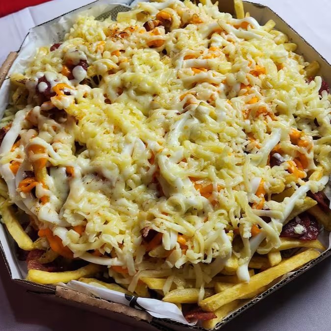 900g De Batata ,Mussarela, Bacon, Catupiry, Cheddar e Calabresa.