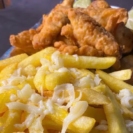 São Servidos 500g( In Natura) De Peixe Tilápia + 300g De Fritas Com Queijo Mussarela. A Porção Acompanha Molho Rosê e Limão