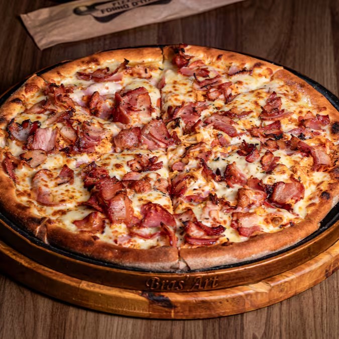 Molho, Mussarela, Calabresa, Bacon crispy, Delicioso molho de mostarda e mel, Oregano.