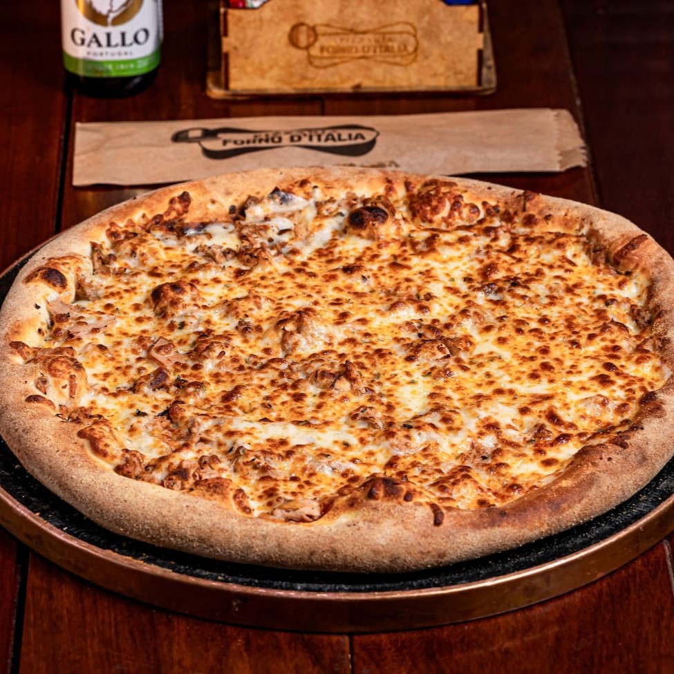 Mussarela, Frango Desfiado, Orégano e Catupiry.