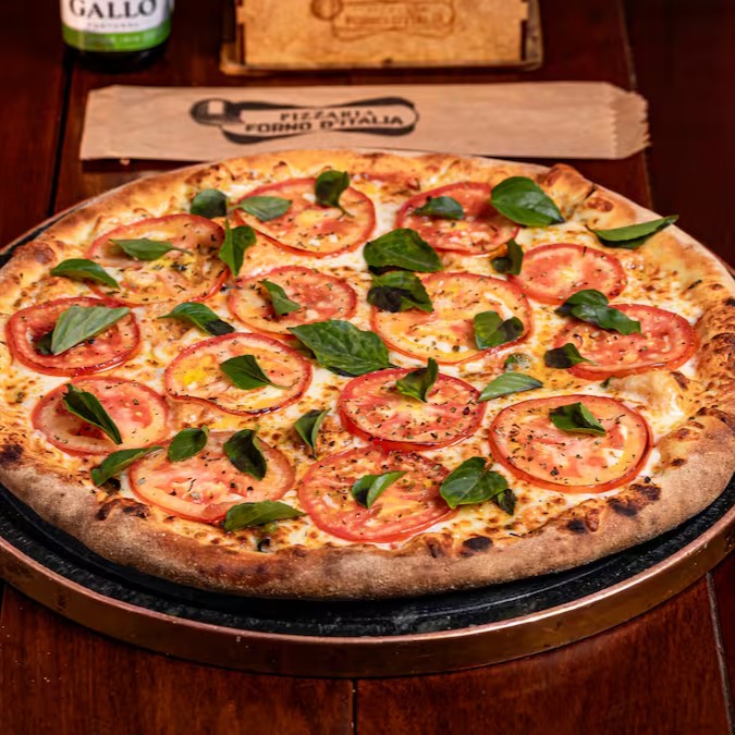 Mussarela, Tomate, azeite, Manjericão, orégano.