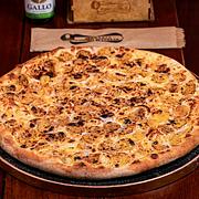 Molho Artesanal, Frango Desfiado, Requeijão Cremoso, Cheddar, Mussarela, Bacon Fatiado e Orégano.