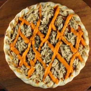 Massa Especial Para Pizza ,Molho Ao Sugo,Queijo Mussarela Ralado,Peito De Frango Desfiado,Cobertura De Cheddar,Orégano E Uma Deliciosa Borda Crocante Recheada Com Cheddar.