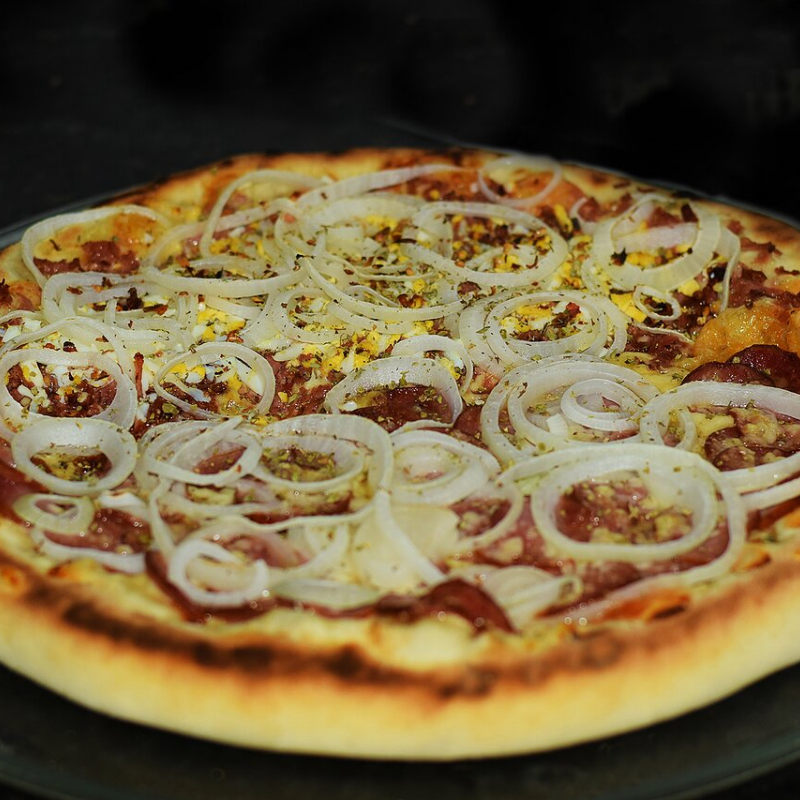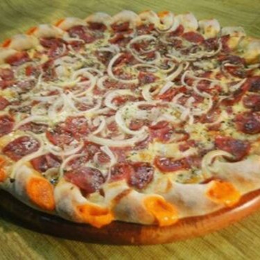 Massa Caseira Coberta Com Molho Ao Sugo ,Mussarela,Calabresa,Cebola, Orégano ,Com Uma Deliciosa Borda Recheada Com Cheddar.