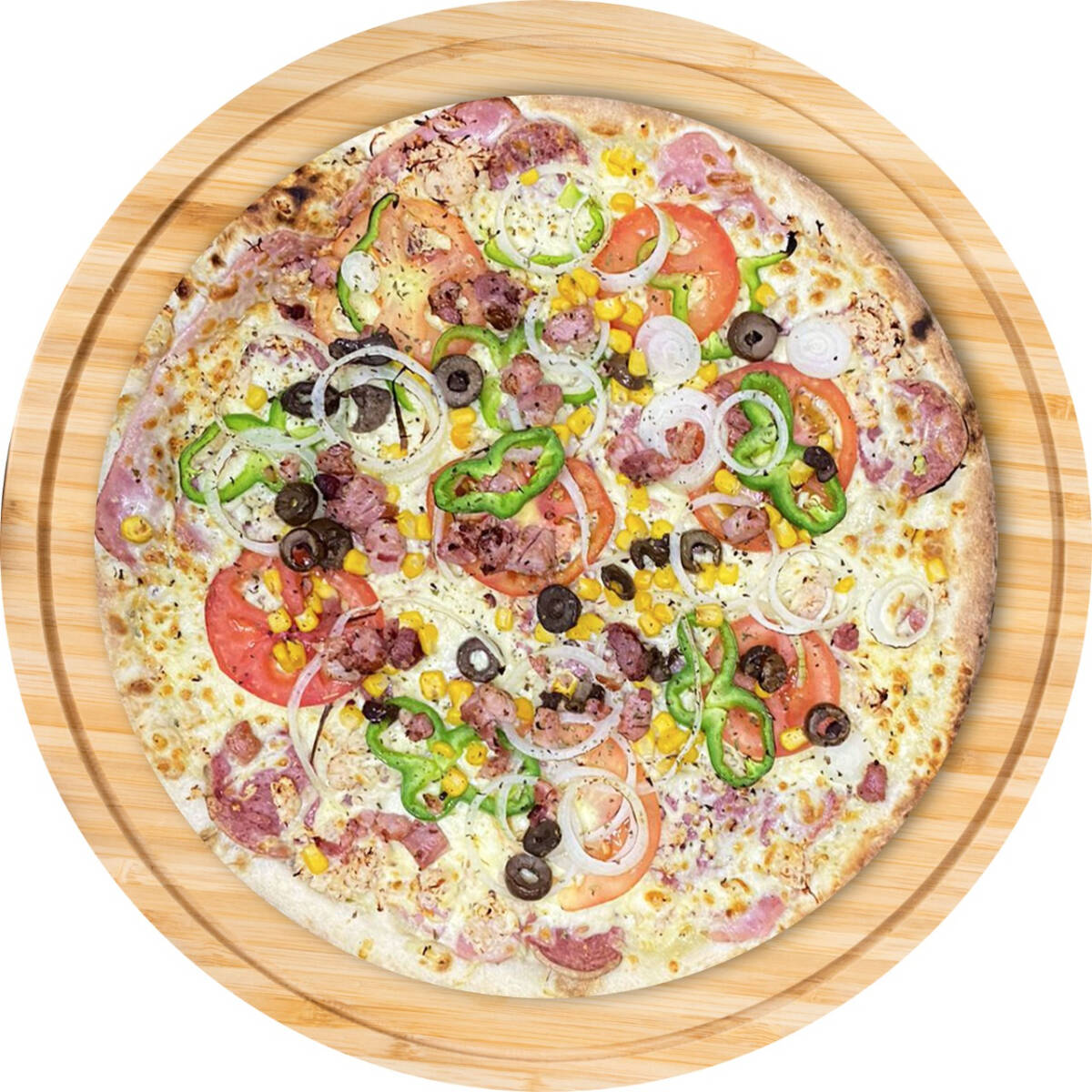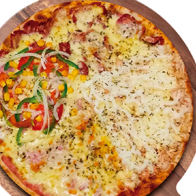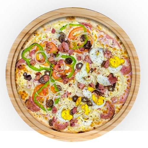 1 Pizza Mista - Mussarela, calabresa, presunto, tomate, pimentão, cebola e milho.
