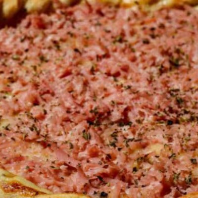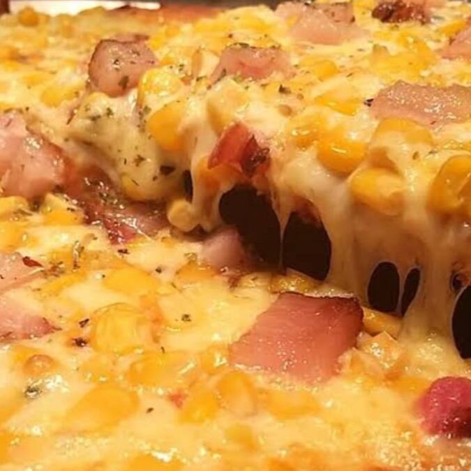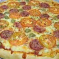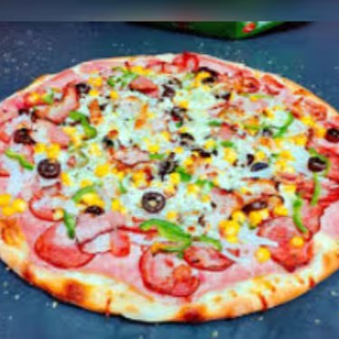 Massa Tradicional, Molho ao sugo Pimentão, Cebola ,Tomate, Milho, Presunto , bacon ,Muçarela