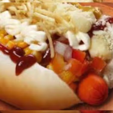 Pão , Molho , Milho, Salsicha ,Frango , Bacon , presunto ,Mussarela , vinagrete , Uva Passa, Batata palha ,