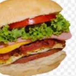 Pão , carne , Presunto , Mussarela , , Bacon , Alface , Tomate , Milho , Batata Palha