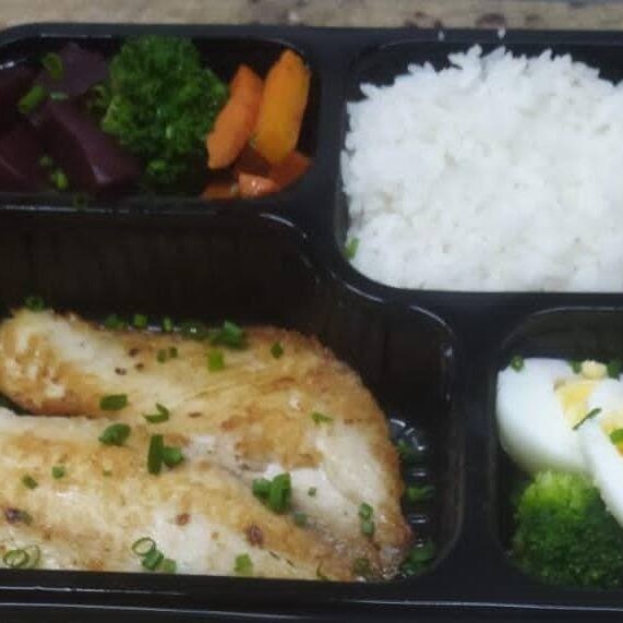 500grs de tilápia. Acompanha arroz salada e legumes salteado na manteiga