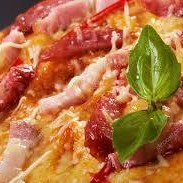 Bacon frango desfiado milho pimentao cebola molho a bolonhesa e queijo