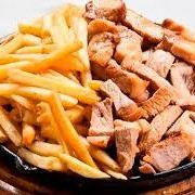 600 grs misto, isca de contra filé, lombo peito de frango. Acompanha arroz tropeiro, fritas e, salada