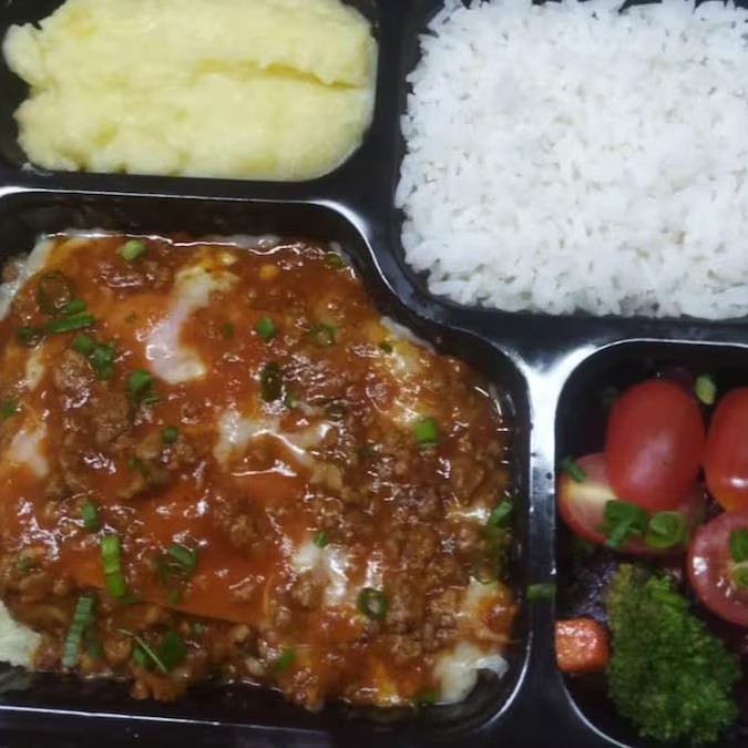 Lasanha e carne moída.