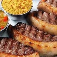 700grs de isca de picanha. Acompanha arroz, fritas, tropeiro, salada, vinagrete e farofa.