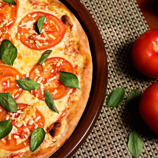 molho pomodoro, muçarela, alho frito, catupiry, molho pesto, oregano