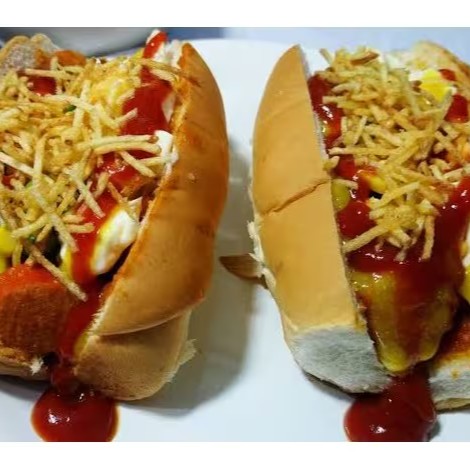 2 salsicha, Molho Tomate, Mussarela, Milho, Bacon, Batata Palha, Creem Cheese.