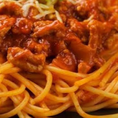 Espaguete, Molho a Bolonhesa ,Mussarela e Cebolinha .