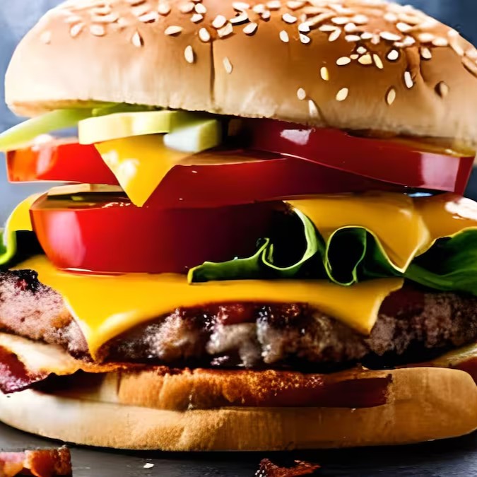 Pão macio recheado com suculento hambúrguer de 90g, fatias de bacon crocante, queijo derretido, presunto saboroso, ovo frito na chapa, batata palha crocante e nosso molho especial da casa. Finalizado com alface fresca e tomate selecionado para equilibrar sabor e textura. Uma explosão de sabores em cada mordida!