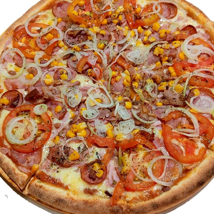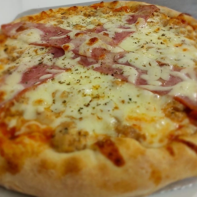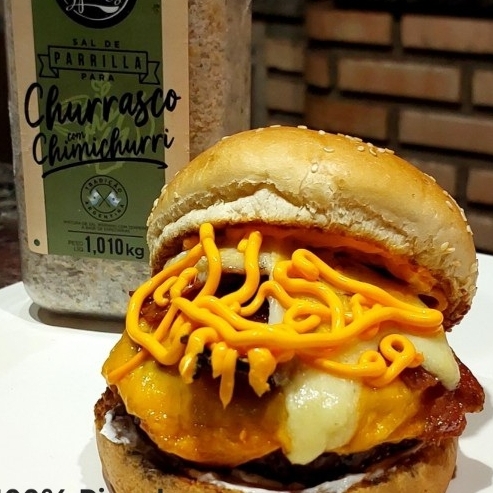 Molho de tomate, blend bovino, Bacon, cebola, Queijo prato.