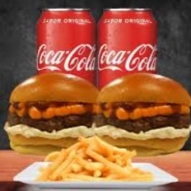 Delicie-se com o nosso 'Combo Casal Feliz', especialmente desenhado para os amantes de sanduíche. Ele inclui 02 Churrasburguers suculentos, cujo sabor da carne você pode escolher, personalizando ainda o ponto de seu gosto. Acompanha 02 porções de batatas fritas, crocantes por fora e macias por dentro, e 02 latas de Coca-Cola geladinha para refrescar. Detalhes como sabor e ponto da carne podem ser especificados no campo de observação. Uma refeição completa para compartilhar com quem você ama!