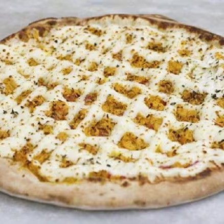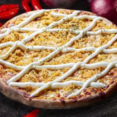 Mussarela, frango desfiado, catupiry, molho ao sugo.