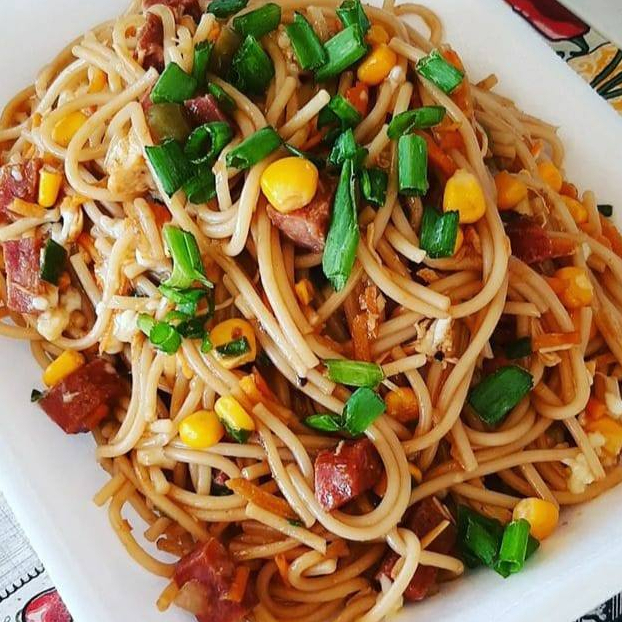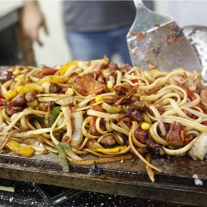 Macarrão Na Chapa Brasileiro - Bacon, Calabresa, Frango Desfiado, Mussarela.