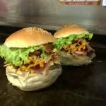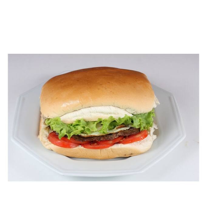 X. Bacon : Pão, hambúrguer de boi, bacon, mussarela, alface, tomate.