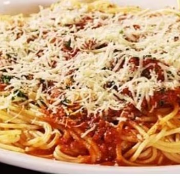 Espaguete, molho à bolonhesa, parmesão, frango desfiado, milho, Catupiry e bacon
