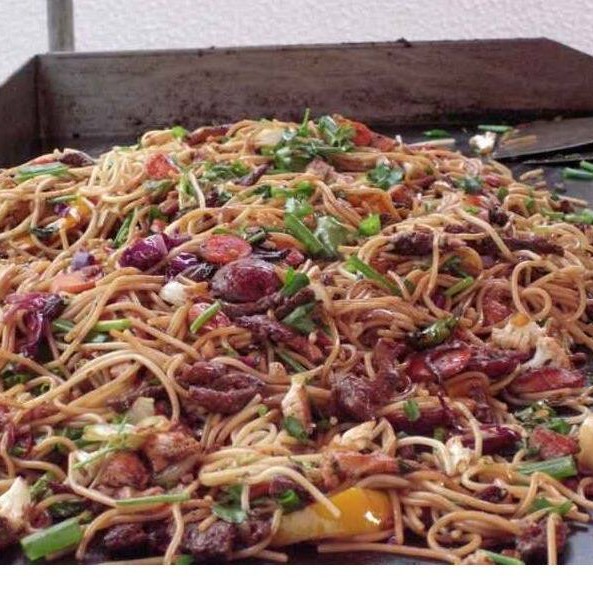 Macarrão Na Chapa Nordestino.macarrão,calabresa,bacon,carne De Sol,peperone,pimentão,cebola,moho Shoyo,alho E Parmesão.