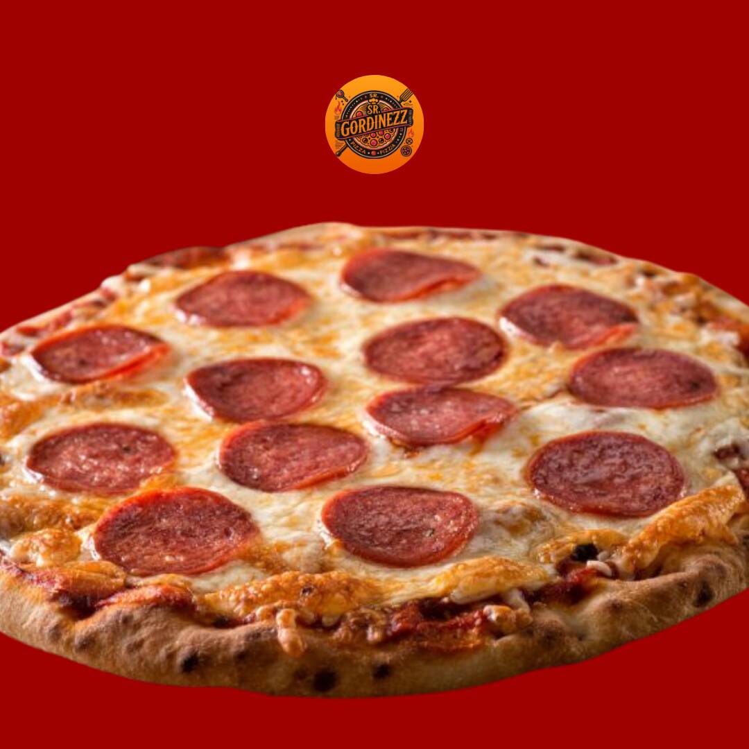 Molho artesanal, pepperoni tropeira, mussarela e orégano. clássica italiana!