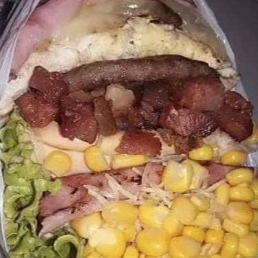 Pão macio, carne de boi, muçarela, calabresa, ovo, queijo, frango desfiado, bacon, presunto, milho, batata palha e salada fresquinha.