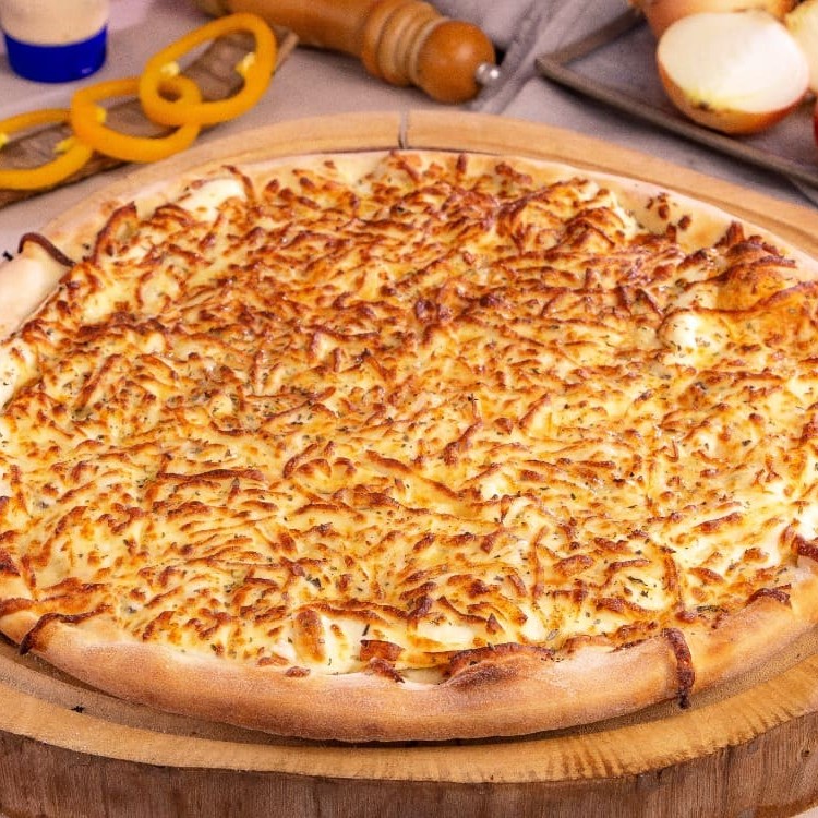 Molho ao sugo, parmesão, provolone, Catupiry, mussarela e orégano.