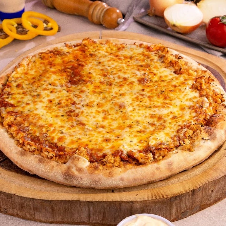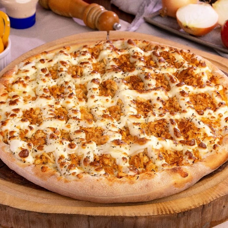 Molho ao sugo, frango desfiado, Catupiry Original, mussarela e orégano.