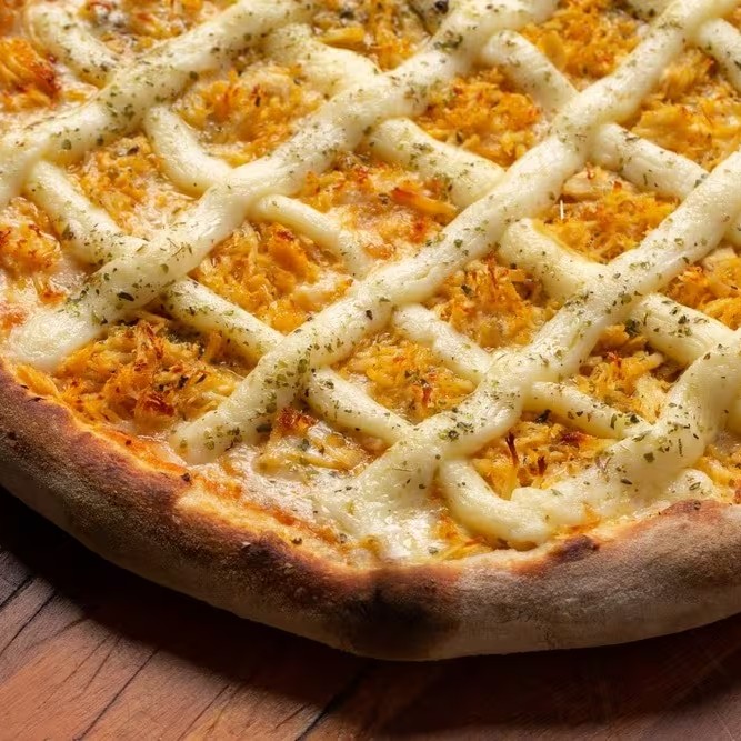 Frango desfiado, mussarela, catupiry e orégano