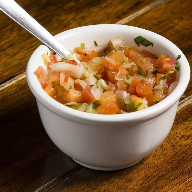 Mistura de tomate, cebola, pimentão e cheiro-verde, marinados no vinagre com azeite.