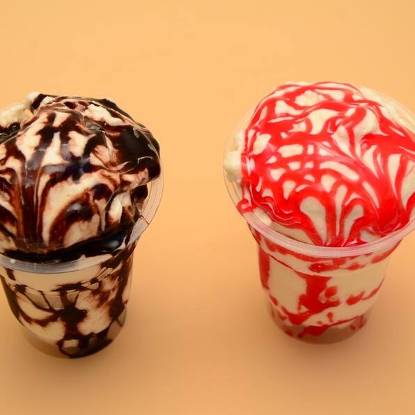 Copo 200ml c/ sorvete baunilha e cobertura.