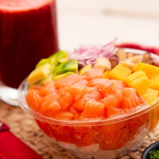 Leve e saboroso, este poke contém 90g de proteína + 05 ingredientes frescos à sua escolha! Este combo acompanha 01 suco funcional ou detox de 300ml.