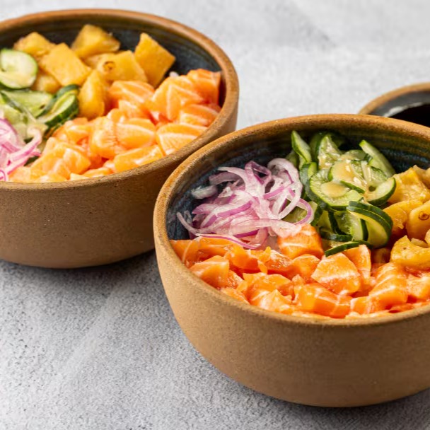 O peso total de cada poke pode chegar a 400g, variando conforme os ingredientes e a base escolhidos.
