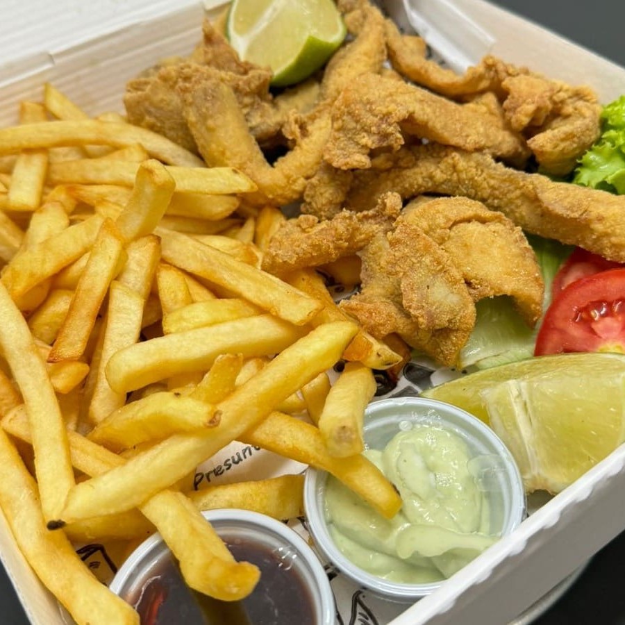 Iscas crocantes e bem temperadas, douradinhas por fora e macias por dentro, acompanhadas de uma posta suculenta de peixe, preparada no ponto certo para manter todo o sabor e suculência. E para completar, uma porção generosa de batata frita sequinha e crocante