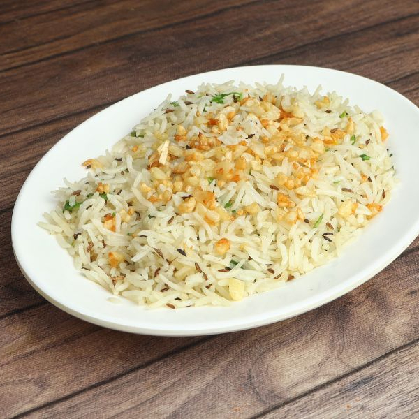 Arroz com alho acompanhado de salada