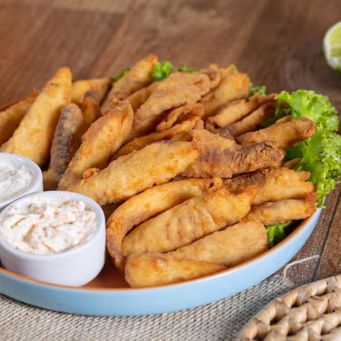 Acompanha ; Molho Tartaro E Molho De Alho.
