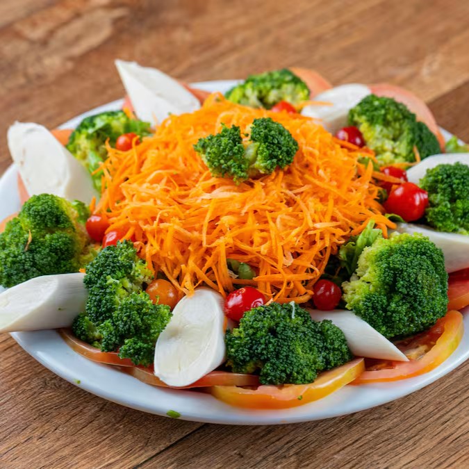 Marmitex que acompanha alface ,tomate ,cenoura ,cebola ,brocolis,e palmito