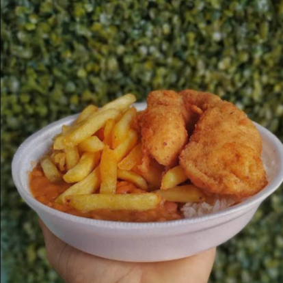 Sua parmegiana favorita agora no formato perfeito para comer em qualquer lugar! Cumbuca montada com arroz, frango empanado suculento, molho suculento e queijo gratinado. Acompanha farofa crocante e batata palha. Ideal para quem busca uma refeição completa, rápida e deliciosa.