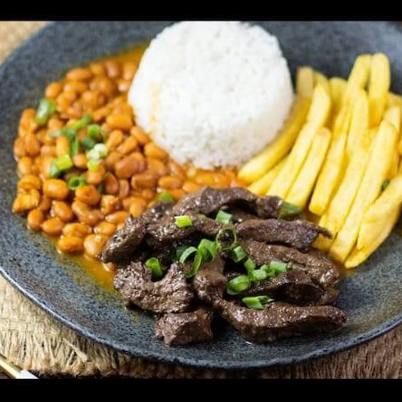 Acompanhamento: Arroz, feijão,Farrofinha ,Batata Frita , salada do dia