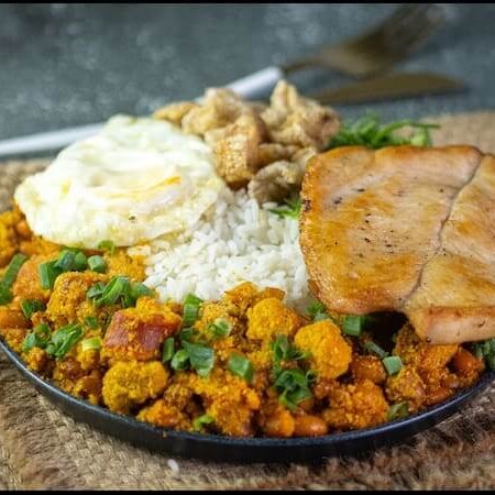 Acompanhamento - tropeiro, arroz, torresmo, couve, ovo frito,1 Bife de porco