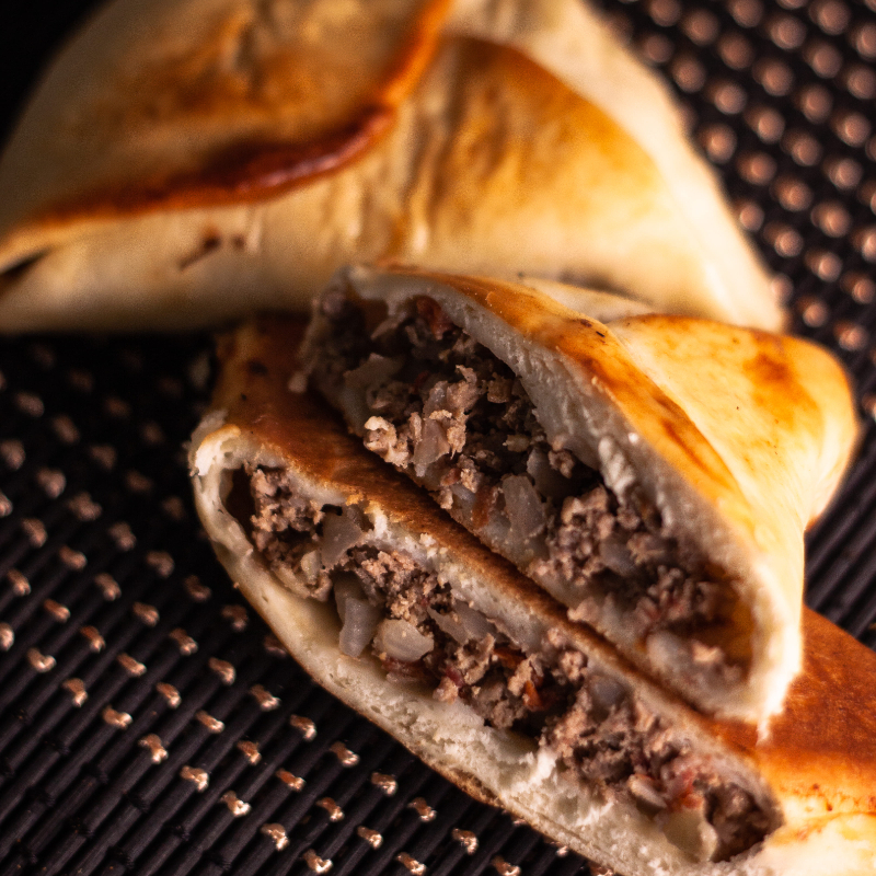 Massa artesanal macia e recheio de carne moída bovina.