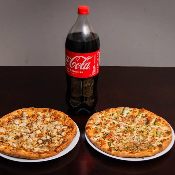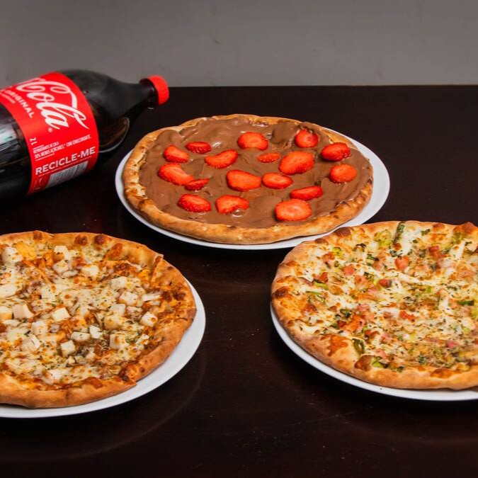 2 pizzas gigante + 1 brotinho doce + 1 refrigerante 2l.
